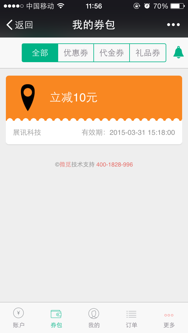 • 券包(常用的优惠券、代金券、礼品券)